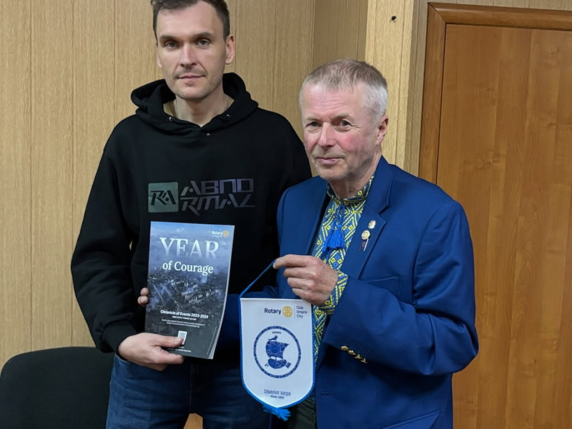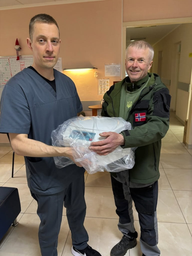 Stange Rotary Klubb har, i samarbeid med blant annet Røros Rotary Klubb, donert penger til kjøp av viktige maskiner til sykehus i Ukraina. Bildene viser overlevering av en blodsentrifuge til en av sykehusets ledere. Behov og vedlikehold av det som kjøres ned av frivillige rotarianere gjøres i samarbeid med Rotary i Ukraina.